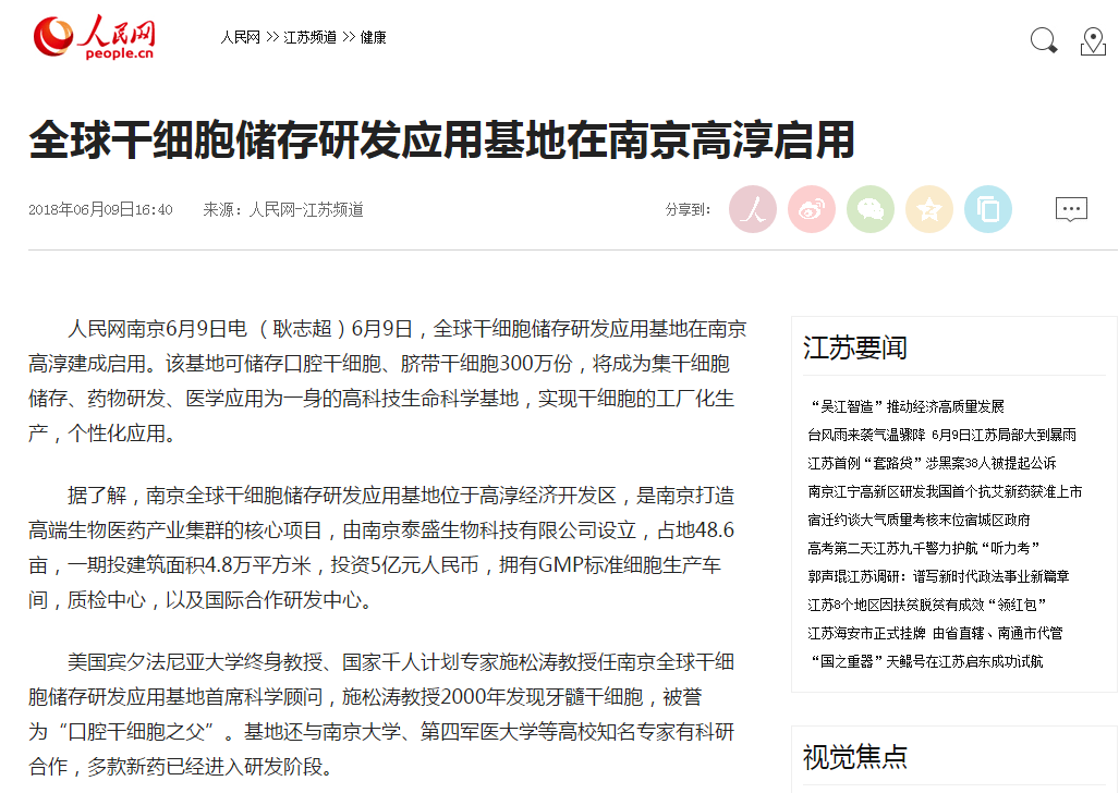 孩子脫落的乳牙或?qū)⒊蔀椤熬让馈保〗?,在江蘇南京,長三角地區(qū)最大的儲(chǔ)存研發(fā)應(yīng)用基地啟用,可儲(chǔ)存口腔干細(xì)胞、臍帶干細(xì)胞三…