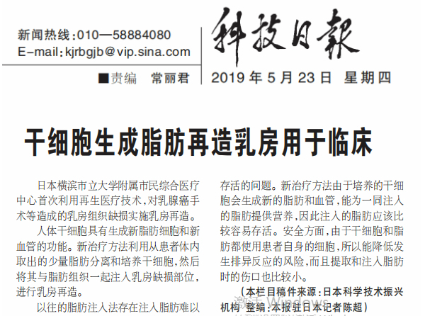 日本橫濱市立大學附屬市民綜合醫(yī)療中心首次利用再生醫(yī)療技術(shù),對乳腺癌手術(shù)等造成的乳房組織缺損實施乳房再造。人體干細胞具有生…