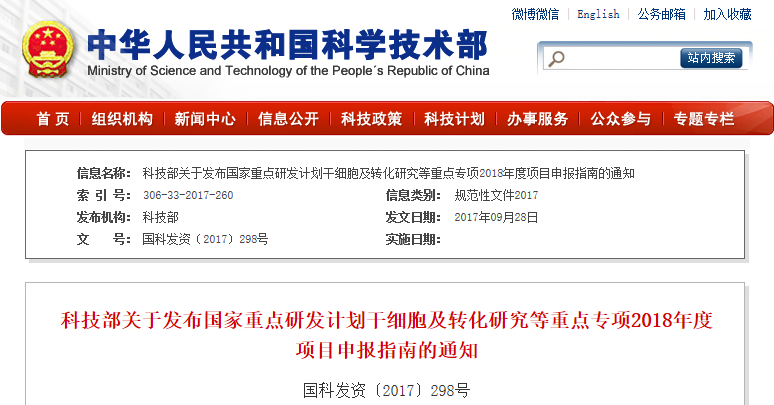 國科發(fā)資〔2017〕298號附件1“干細胞及轉(zhuǎn)化研究”試點專項2018年度項目申報指南為取得干細胞及轉(zhuǎn)化研究的原創(chuàng)性突破和推動轉(zhuǎn)化應用,整體提升我國再生醫(yī)學領域水平,根據(jù)《國家中長期科技發(fā)展規(guī)劃綱要(2006-2020年)》部署和《國務院關于深化中央財政科技計劃…