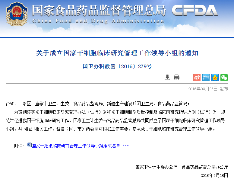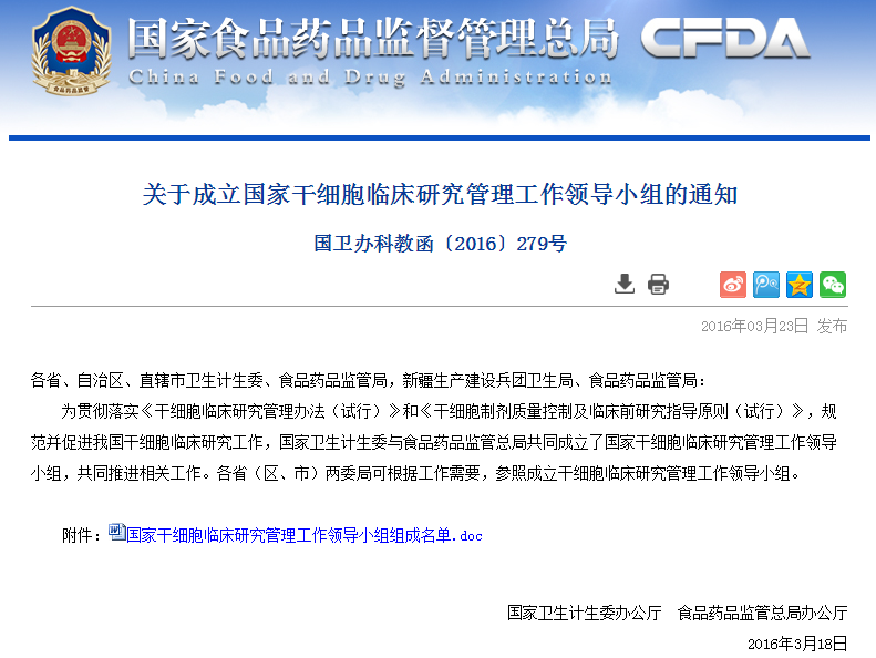 各省、自治區(qū)、直轄市衛(wèi)生計生委、食品藥品監(jiān)管局,新疆生產(chǎn)建設(shè)兵團衛(wèi)生局、食品藥品監(jiān)管局: 根據(jù)《干細胞臨床研究管理辦法(試行)》(國衛(wèi)科教發(fā)〔2015〕48號)要求,國家衛(wèi)生計生委與食品藥品監(jiān)管總局共同成立由干細胞基礎(chǔ)及臨床相關(guān)專業(yè)、干細胞制劑…