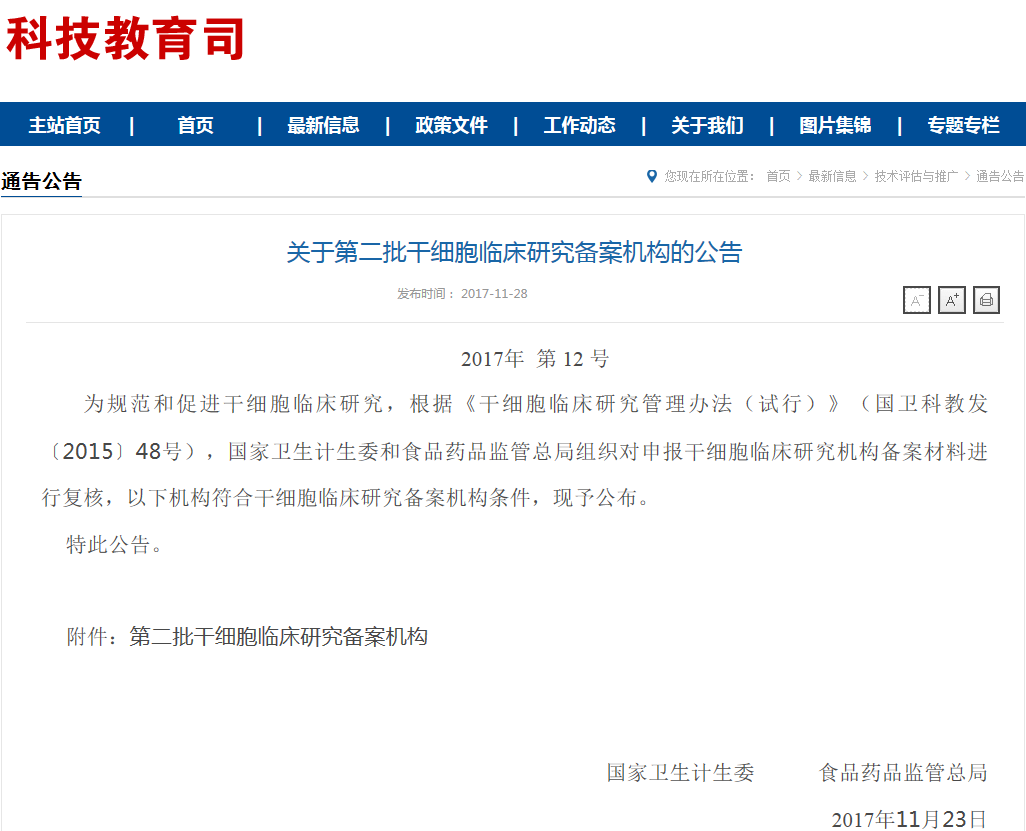 截止至2017年11月28日,我國一共有102家醫(yī)院(干細胞臨床研究機構(gòu))通過備案。附件: